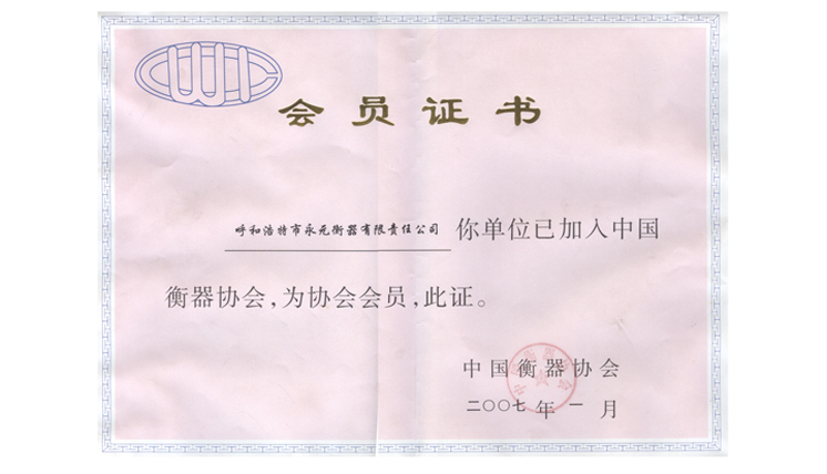 中國衡器協(xié)會(huì )會(huì )員證書(shū)